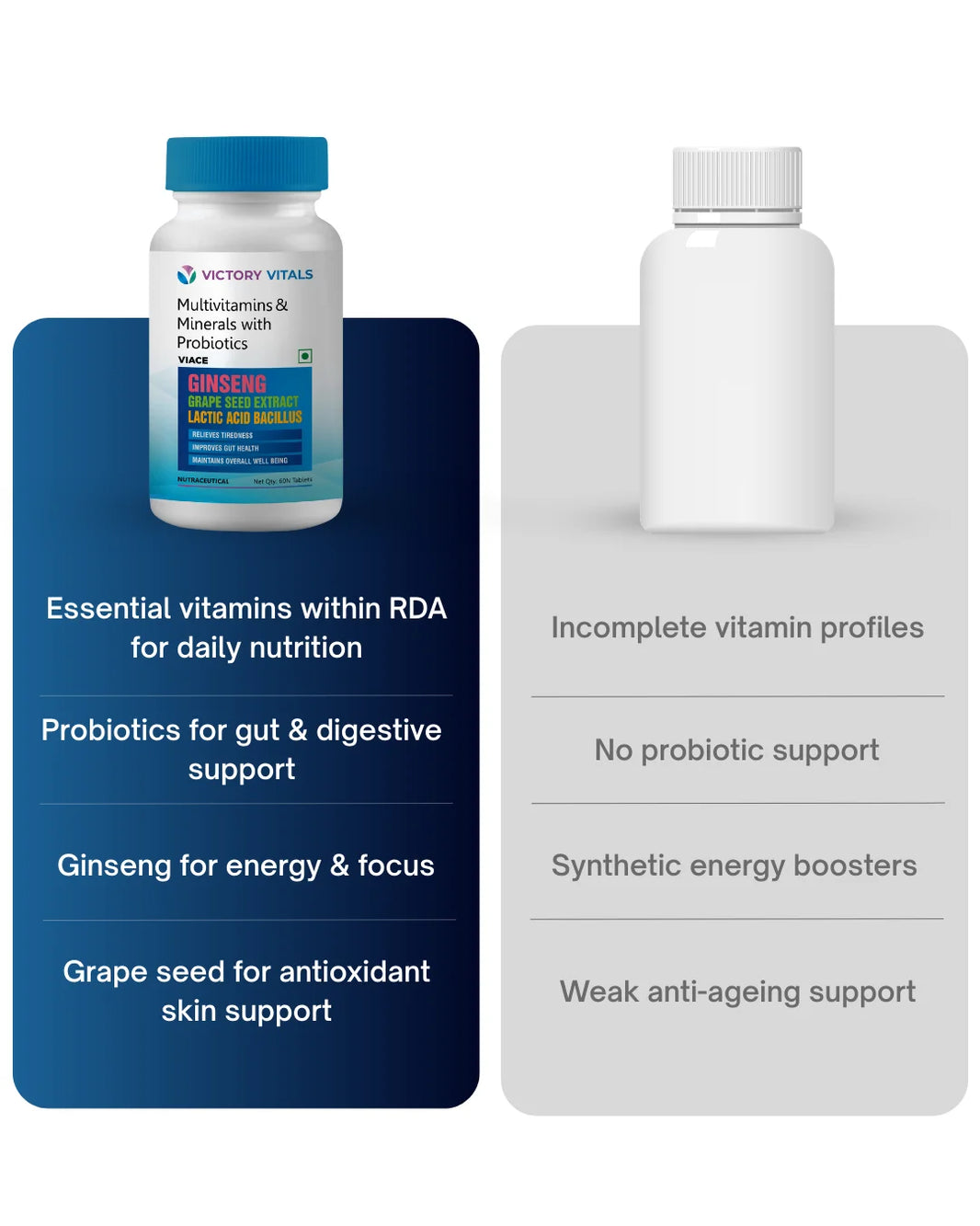 Multivitamins help fill nutritional gaps in your diet and provide essential vitamins and minerals needed for overall wellness.